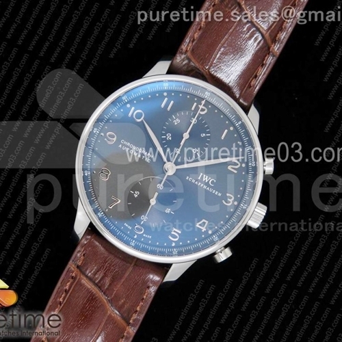 ZF IWC 포르투기즈 Chrono IW371431 Gray Dial On Brown Leather Strap A79350 V3